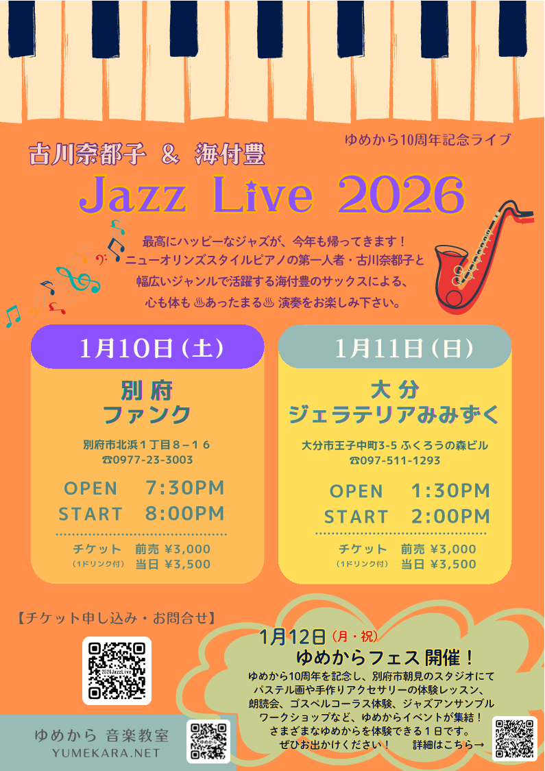 ◆Soul Food Cafe 30周年ライブ、お陰様で最高な夜になりました。別府の音楽&アートサロン”ゆめから”が10周年を迎えます。柔らかく陽が差し込み、たくさんの緑に囲まれた開放的なサロンでは、ピアノを弾いたり、パステル画を描いたり、優しく心満たす時間を過ごすことができます。